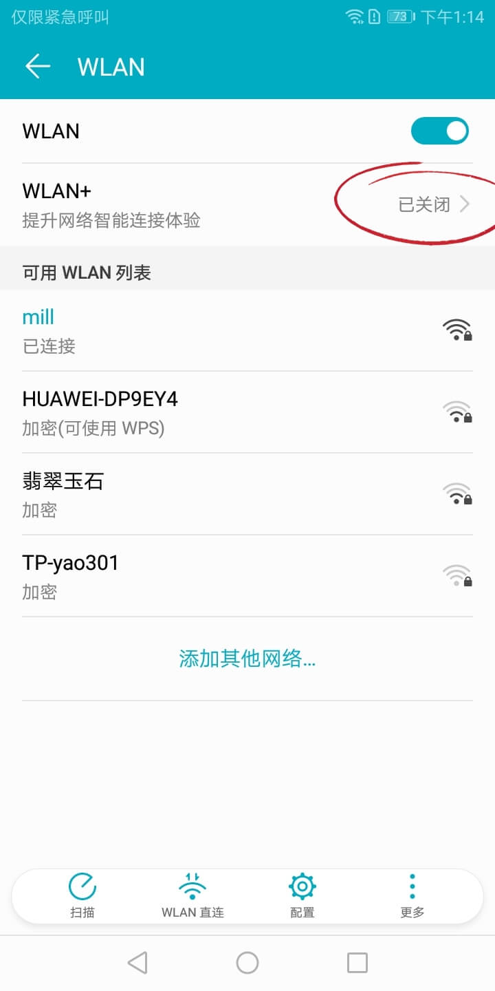 在系统「设置」-「无线和网络」-「WLAN」- 「WLAN+」- 点击关闭。