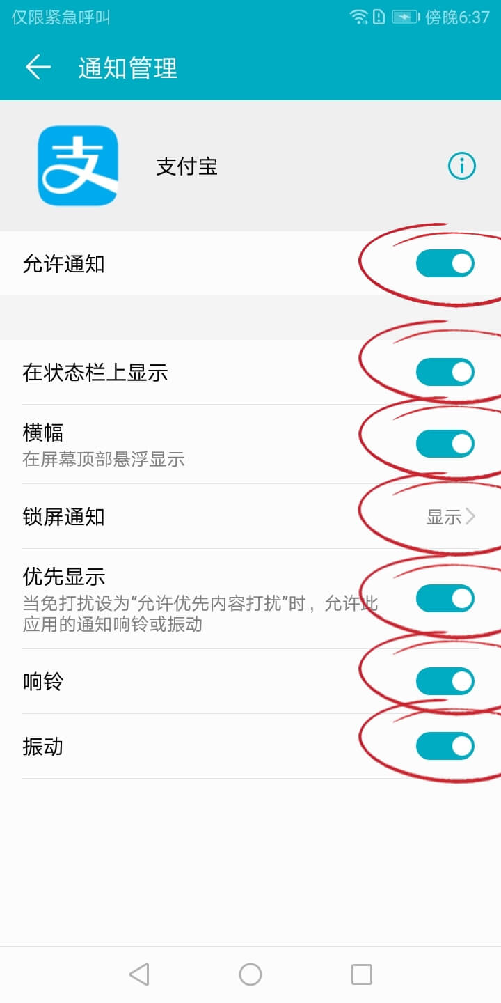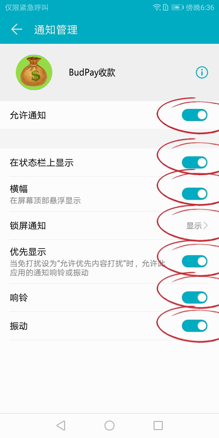 在系统「设置」-「通知和状态栏」-「通知管理」- 找到 Ccpay收款、微信、支付宝 开启所有通知。