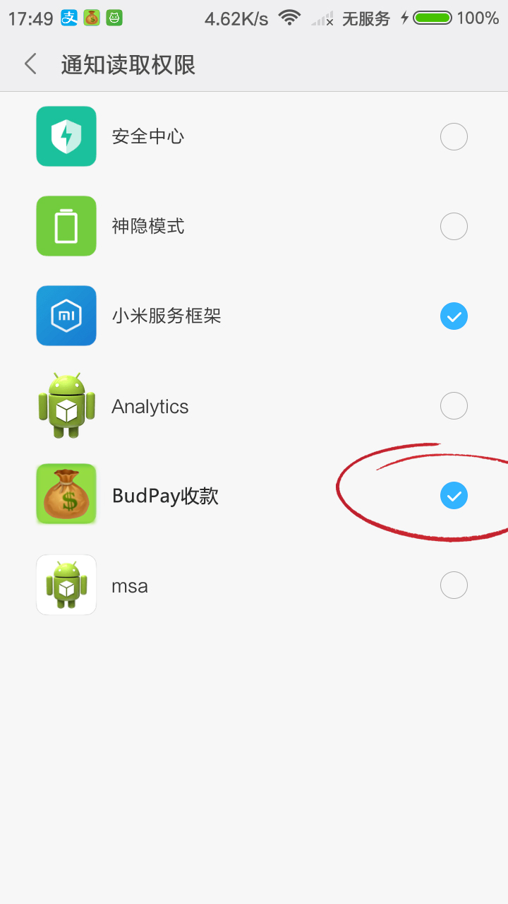 注意:必须开启 Ccpay APP 的通知读取权限,否则无法读取支付通知。