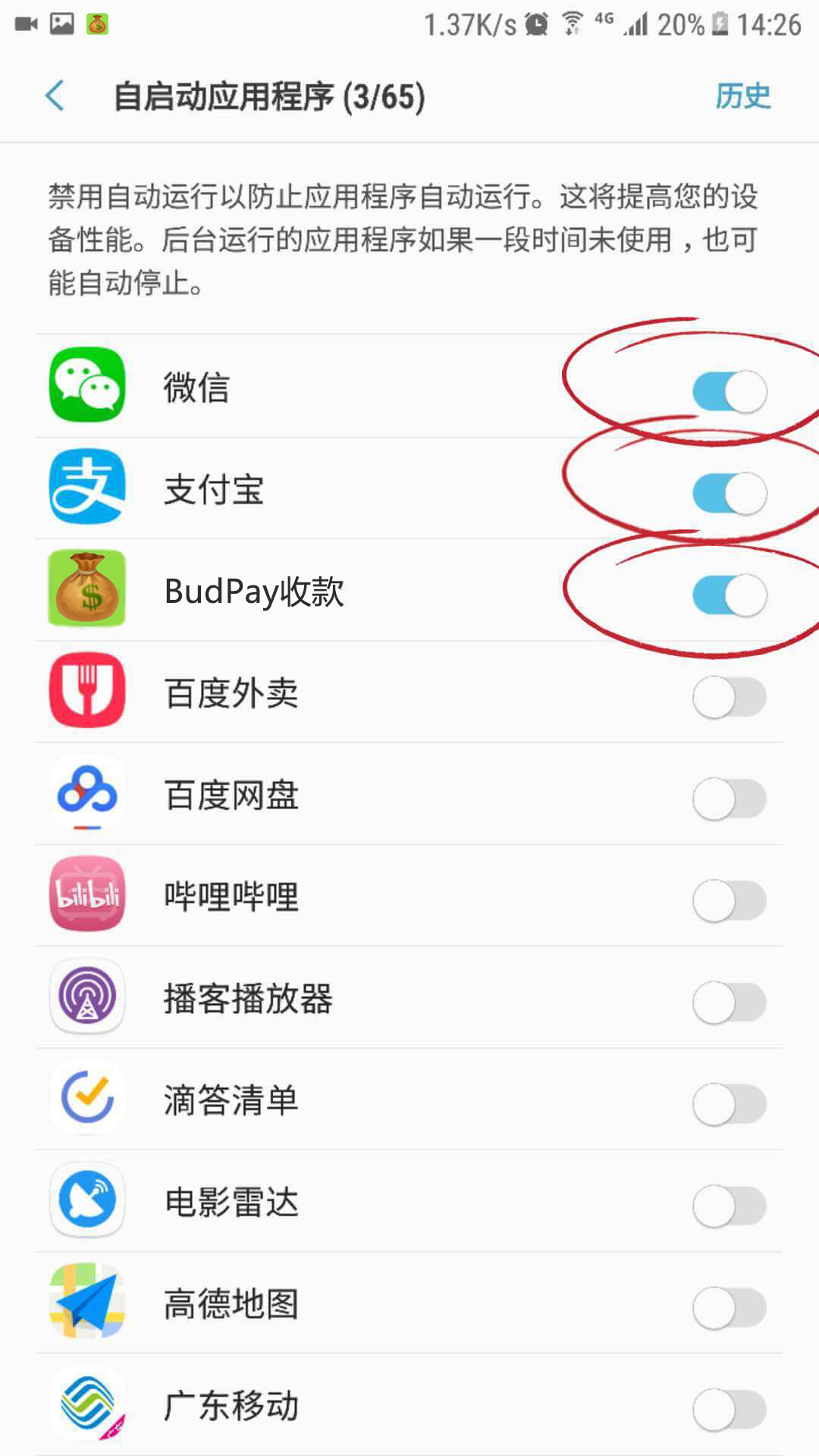 「智能管理器」-「应用程序管理」-「自启动应用程序」- 勾选 Ccpay收款、微信、支付宝 允许自启动。