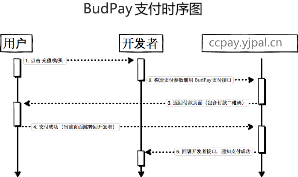 接口地址:https://mzfpay.caiyue01.com/createOrder (在后台应用配置页面查看) 调用方法:POST (注意 content-type 设置为 application/x-www-form-urlencoded 哦) 调用参数: - name, 必填, 订单销售商品名称 - pay_type, 必填, 支付方式(可选alipay/wechat) - price, 必填, 订单价格 - order_id, 必填, 订单号 - order_uid, 必填, 订单购买用户(可以为空字符串,但是建议设置为购买用户编号,便于后续对账) - notify_url, 必填, 支付成功后回调地址 - return_url, 必填, 支付成功后前台跳转地址(可以为空字符串) - feedback_url, 选填, 用户支付后未到账(可能超时付款),支付页面显示的反馈按钮链接(可以为空字符串) - sign, 必填, 将参数按 name + pay_type + price + order_id + order_uid + notify_url + return_url + feedback_url + app secret 顺序拼接后MD5(纯 value 拼接,不要包含 + 号) 如果有问题,还可以参考 API 调试文档 注意:如果你希望使用 BudPpay 的支付页面,那么你的后台构造签名等参数后返回给用户浏览器,在浏览器提交 form 到 BudPpay,就会显示支付页面; 如果要自定义支付页面,那么就在 api 后面加参数 format=json 你后台请求这个接口返回结果就是 json 格式的,需要你自己展示付款二维码。 注意:如果 api 后面加参数 round_robin=true 那么轮询使用各个手机收款(排除超过限额和权重为0的)。 注意:如果 api 后面加参数 expire=秒数 可以自定义订单过期秒数,默认是 300 秒。 注意:如果 api 后面加参数 price_type=floor 只会用价格小于请求价格的二维码;加参数 price_type=ceil 只会用价格大于请求价格的二维码。 注意:如果 api 后面加参数 price_gap=0.1 价格备选范围就是 支付价格 ±0.1 内(默认为 0.1)。 注意:如果 api 后面加参数 no_int=true 则不会使用整数金额二维码。 注意:如果 api 后面加参数 user_cache=true 那么创建订单时如果 同一个用户(order_uid)存在相同金额(price)、相同支付渠道(pay_type)且未过期的订单,